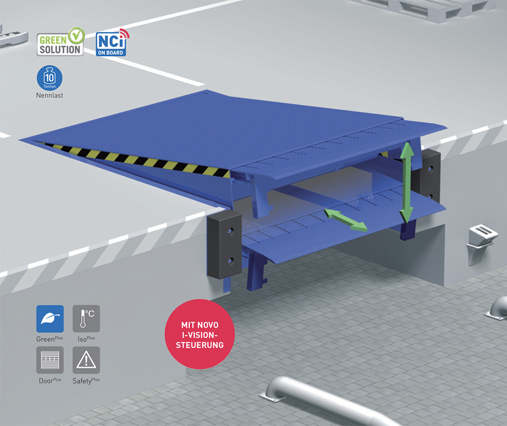 Les niveleurs de quai hydrauliques de Novoferm sont disponibles avec avance et en différentes versions. Comme point fort, nous vous proposons notre NovoDock EVO X comme niveleur de quai de la prochaine génération, ainsi que le NovoDock L730i comme quai de chargement ISO idéal.